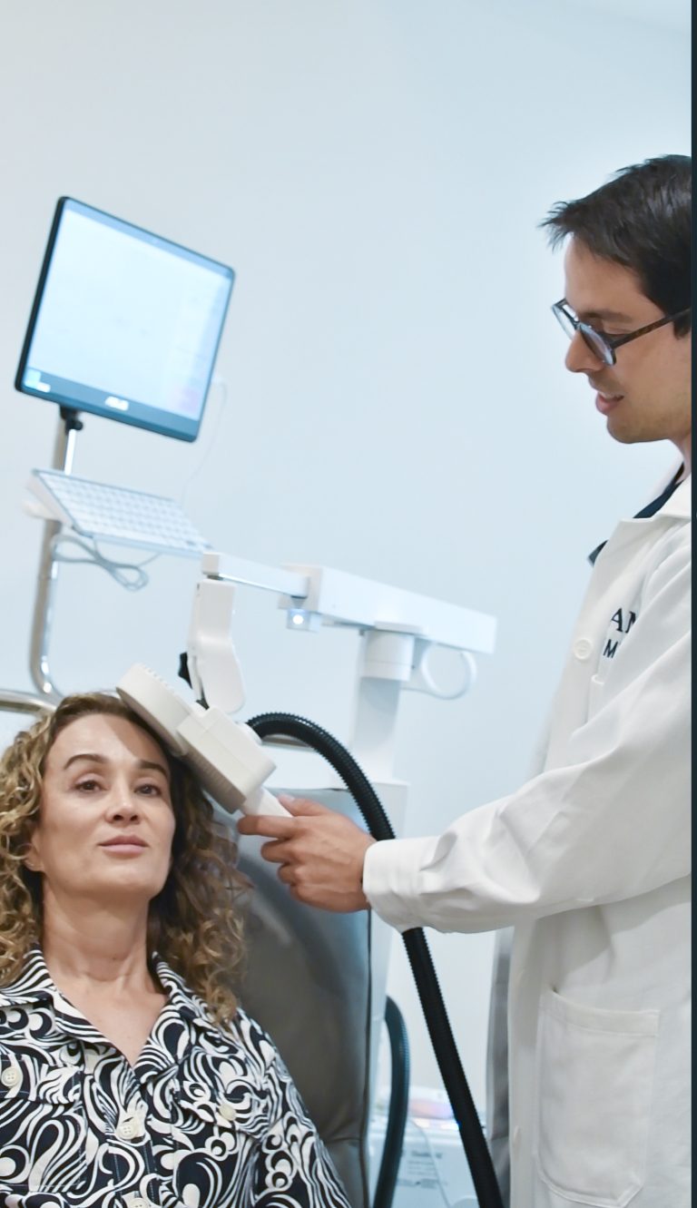 La Estimulación Magnética Transcraneal (TMS) es un tratamiento no invasivo que utiliza campos magnéticos para estimular las células nerviosas en el cerebro. Es especialmente efectivo para pacientes con depresión mayor que no han respondido adecuadamente a medicamentos.